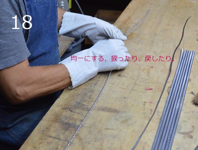 | 1段目の鉛桟に入れるモールの制作、4mmケイムを半分に割り、捩って完成。 |