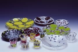 | 三彩のガラス碗 | 墨文様のガラス椀 | ウスズミアラレのサラダボール | ピンクタマゴのサラダボール | 黄色気分のサラダボール | ピンクとブルーの大皿 |