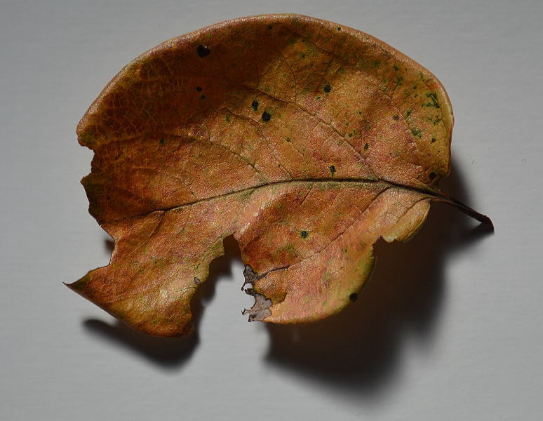 | 柿の実はは残念でしたが、鳥さんとシェアしたということであきらめました。足元に落ちていた柿の葉がキレイだったので拾って来て眺めては楽しんでいます。 |