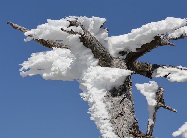 シラビソの枝に着いた雪と氷が砂糖菓子のようです。 |