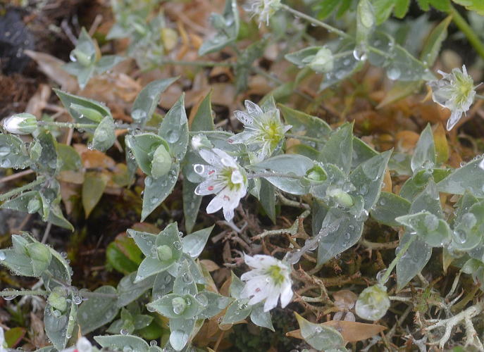 雨に濡れるシコタンハコベ。 |