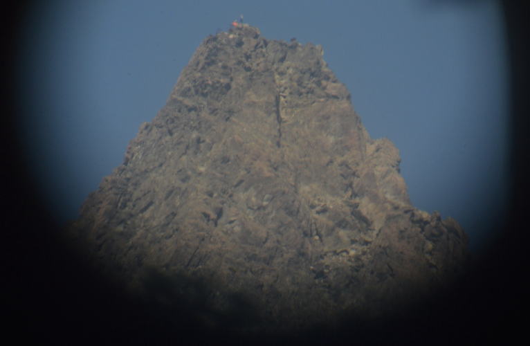 | ほぼ予定時刻に槍ヶ岳山荘に到着、準備をして穂先へ、登りはじめてしばらくした所で携帯に御嶽山噴火の一報がありました。 その時点では雲に隠れて見る事はできませんでしたが、次第にくもが下がり噴煙が高く上がって異様なもの見ている感じです。 今年は御嶽山には2回登って小さなガスの吹きだしにも怖さを覚えました。現在ニュースで伝えられる限りでは多くの犠牲者が 出ているもようです。亡くなられた方々には心よりご冥福をお祈り致します。 2014年7月3日の御嶽山の様子はこちら。 |